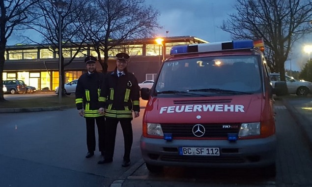 Das gleiche Ziel hat die Werkfeuerwehr Weishaupt. Ebenfalls ausgerüstet mit
